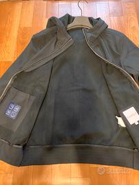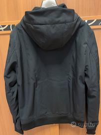 Giubbetto nero con cappuccio. Taglia S misure: spalla cm46 maniche cm64 lunghezza cm63, antipioggia antivento traspirante, tasca interna, mai usato.