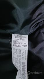 60% poliestere 40% lana Non ha alcun difetto, portato per poco tempo. Veste giusto, non si porta con maglioni grossi e/o larghi sotto, il modello e la taglia non si adattano. Ha diverse tasche Collo e polsi in maglia