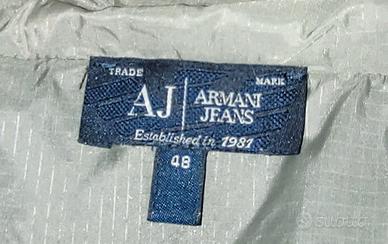 Giubbino piume d'oca Armani Jeans, reversibile, con cappuccio, tasche con chiusura a zip. Taglia 48 e in perfette condizioni.