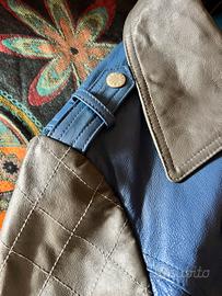 Giacca in morbido pellame cinghiale donna Stile chiodo bomber Bicolore blu/grigio Taglia S Prodotto in Cina