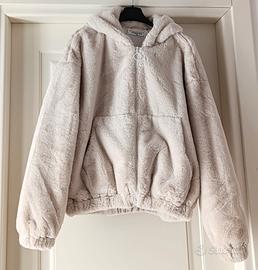 Giubbino Bomber in ecopelliccia colore panna, foderato, taglia S/M, con cappuccio, morbidissimo, leggero e caldo, come nuovo