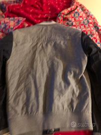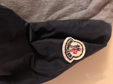 Giubbino Moncler originale tg 0 (xs/s H170cm) cotone grigio nylon blu logo sulla manica sx interno nylon trapuntato polsini e colletto in cotone 2 tasche con cerniera bottoni automatici seconda mano senza difetti Mis 51cm lung / 59 cm lungh manica No perditempo
