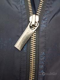Giubbino blu Calvin Klein Jeans con zip frontale e colletto alto. - Tessuto leggero. - Dettagli a fantasia. - Maniche lunghe.