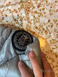 In vendita uno splendido piumino leggero Canada Goose, modello con cappuccio, taglia L. Caratteristiche: • Marca: Canada Goose • Modello: Piumino leggero (tipo 'puffer'), probabilmente un modello della serie HyBridge o simile. • Colore: Un bellissimo grigio argento metallizzato/iridescente, con una leggera finitura lucida. • Taglia: L (veste fedele alla taglia, ma consultare le tabelle Canada Goose per la vestibilità precisa). • Dettagli: • Cappuccio integrato con cordoncini di regolazione. • Cerniera centrale completa a due vie. • Polsini elastici interni per una migliore tenuta termica. • Pieghevole (molti modelli simili si piegano nella propria tasca). • Patch circolare Canada Goose sul braccio sinistro (logo classico nero). • Etichette e linguette delle cerniere firmate. • Condizioni: Pari al nuovo. Indossato solo un paio di volte, non presenta segni di usura, macchie o difetti. Pulito e pronto per essere indossato.