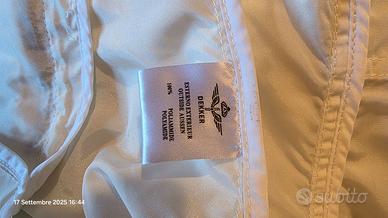 Colore bianco in tessuto poliestere, antivento e antipioggia usato pochissimo in perfette condizioni senza lacerazioni o macchie.