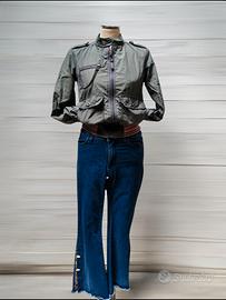 2 grandi tasche frontali con bottone ed una piccolina con lampo sul petto