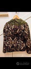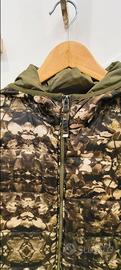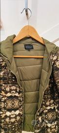 Piumino mezza stagione 100 gr fantasia sui toni del verde e beige taglia M .Dotato di due tasche esterne laterali con zip e una tasca interna ha il cappuccio incorporato. Condizioni ottime. Ritiro a cura dell'acquirente zona Infernetto Roma.
