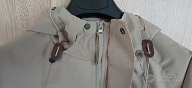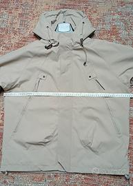 tasche grandi, ottimo per la mezza stagione, non è impermeabile, internamente foderato. con cappuccio. zip e bottoni.
