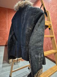 Vendo giubbino da donna TG.42 in montone cucito a mano con collo e finiture in pelliccia. Tasche laterali, chiusura con lacci in pelle. La lavorazione della pelle è scamosciata all'esterno e pelo morbidissimo all'interno.