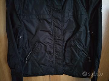Giubbino da donna leggero X-cape originale impermeabile color nero, con tasche con cerniera, chiusura centrale con cerniera e bottoni. Misura L.