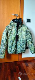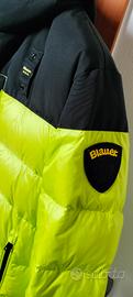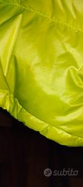 Bellissimo giubbino gilet double face blauer con cappuccio, colore giallo fosforescente/ grigio verde militare.