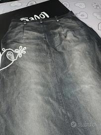 l'abito e messo benissimo il giubbino alla vita mentre la gonna e lunga alle caviglie....
