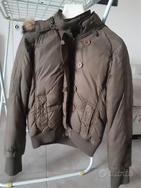 Giubbino da ragazza in vera piuma, colore marrone scuro ed in ottimo stato. Unico piccolo difetto: un bottone si era staccato, ma è stato ricucito.