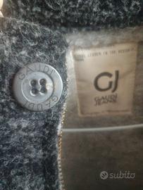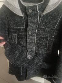 giubbino nero Gaudì jeans misura M , dentro grigio 45%lana 55% poliestere 40,% viscosa , dentro grigio , 4 tasche frontali , un unico difetto all'interno solo da un lato