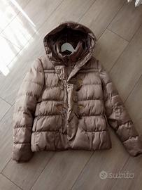 Giubbino giubbetto piumino color oro con cappuccio. Taglia M