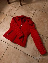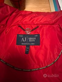 Giubbino rosso di Armani Jeans in buono stato, usato poche volte. Ha qualche piccolissimo difetto (dettaglio nell’ultima foto) Cappuccio removibile