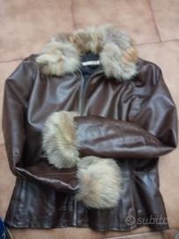 giubbino in pelle da donna,con collo e orlo m nihe in plliccia ecologica