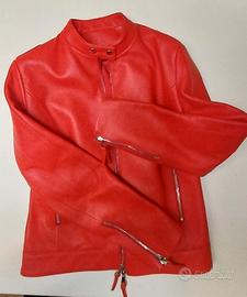 Giubbino MAI USATO da donna in vera pelle di manifattura artigiana, color rosso, sfiancato, TG 46, foderato. Va bene ad una taglia L/XL. Può essere anche utilizzato come giubbino da moto perché scende appena sul fianco. È molto ben rifinito nei dettagli, cuciture, cerniere e nella fodera interna bella robusta. L'ho fatto realizzare prima dell'inverno scorso ma sono dimagrita di 1 taglia e mezza e mi è largo, per questo lo svendo. L'ho pagato 260 euro, quindi il prezzo che vedete non è trattabile.