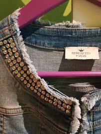 Giubbino jeans vintage Liu Jo taglia S donna con maniche a 3/4 bordature in strass.