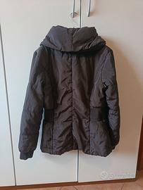 Giubbino marrone sfiancato, con doppia cerniera e bottoni automatici. Ampio collo che si piega (vedi foto). Taglia XL nell'etichetta ma veste M/L. Sta molto bene anche con una cintura.