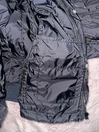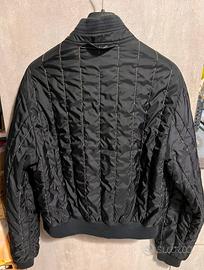 Giubbino trapuntato nero del marchio Armani Excange (A.G.). Presenta un motivo trapuntato unico grazie alle sue cuciture a zg zag verticale e una cerniera sul davanti