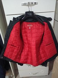 Giacca in stile motociclistico con logo Moto Guzzi. Taglia S. - Patch ovale Moto Guzzi sul petto. - Tasca con zip sul lato sinistro. - Tasche frontali applicate. - Dettagli rossi sulle maniche. Imbottitura staccabile per periodo estivo