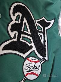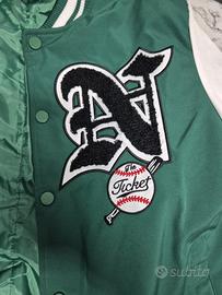Giubbino nuovo con cappuccio bianco imbustato. E' bellissimo verde e bianco con stampe NY veste tg 44/46