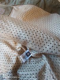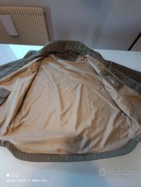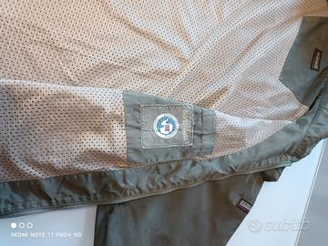 Giubbino bellissimo verde militare tessuto tecnico robusto ma leggero impermeabile e antivento. Ottimo per qualsiasi occasione in particolare anche per moto e scooter. Manica 69 cm, Spalle 53.5 cm, Busto largo 65cm, di da base del collo alla base della schiena 76 cm