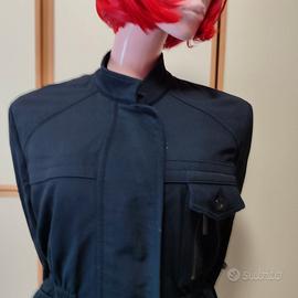 Giubbino nero Paola Frani. collo di pelliccia asportabile, con bottoni. Tre ampie tasche con bottoni di cui una sul seno sinistro, con cerniera. Maniche con polsino con bottone. Chiusura davanti con cerniera e 6 bottoni a pressione. Collo alla coreana se non è attaccata la pelliccia. Arricciatura con elastico in vita. Composizione: esterno: 46% cotone, 46% poliammide, 8% elastane; fodera: 60% acetato, 40% viscosa. un leggero strato di imbottitura interna. Taglia 40, ma si adatta bene anche alla taglia 38, perciò si consiglia di controllare le seguenti misure: spalle cm 42, lunghezza cm 57, circonferenza seno cm 95, circonferenza vita con elastico non tirato 74 cm, manica 63-50 cm. Usato poco, in buone condizioni. A Roma ritiro in zona Piazza Talenti. Disponibile per la spedizione.
