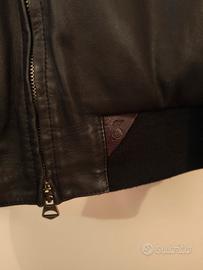Vendo giubbino in pelle stile bomber, imbottito in piuma marca Stewart. In ottime condizioni, indossato pochissimo. Io sono 1.73 per 69 kg, circonferenza petto circa 94 cm, taglia corretta, dipende se piace più o meno stretto. Caldissimo perché imbottito in piuma, esterno in pelle, due tasche più una interna, cerniera con colletto a due bottoni. Unico difetto i due bottoni si sono allentati e li ho tolti, ma li ho ancora e si possono riattaccare. Interno collone polsini sono in tessuto morbido. Vendo solo per inutilizzo e fare spazio.