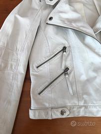 Vendo per inutilizzo giubbino pelle morbidissima bianco marca Zara originale, taglia S, usato ma in ottime condizioni e pulito. Misure: