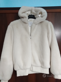 Splendido giubbino in pelliccia sintetica da donna o ragazza con cappuccio, molto elegante morbido e caldo, ben rifinito come nuovo