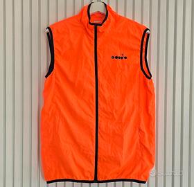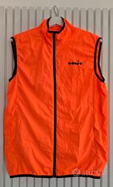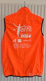 Giubbino smanicato ultraleggero Diadora in tessuto tecnico traspirante, realizzato per l’edizione 2024 della Braconi Terni Half Marathon. Colore arancione fluorescente ad alta visibilità, con bordi neri a contrasto e stampa evento sul retro.