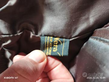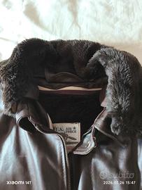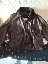 mitico giubbino in pelle vera anni 80 dal film Top Gun, con decorazioni artigianali ed ogni singolo bottone è firmato, manca soltanto ad uno solo la clip di aggancio facilmente sostituibile, colore marrone sfoderabile taglia L veste comodo. vale la regola visto e piaciuto Non si accettano Resi.