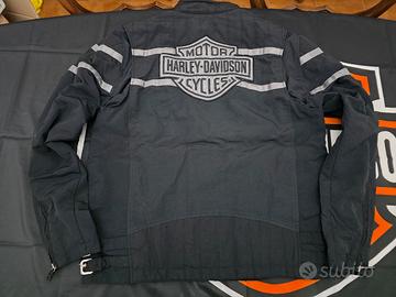 vendo giubbino uomo tg L originale harley in cordura antipioggia e antivento. Colore: nero: regolazione antivento ai polsi e in vita. Scritte e logo retroriflettenti. Privo di difetti.