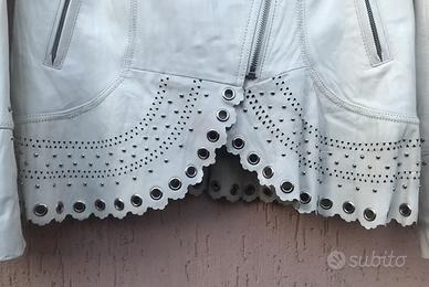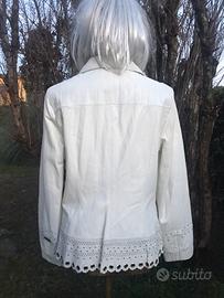 Vendo bellissimo e morbidissimo giubbino donna vera pelle color bianco, modello elegante e raffinato con tasche chiusura con cerniera completamente foderato che veste una TG. 44 ROCCOBAROCCO, nuovo mai indossato causa taglia errata.