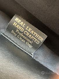 Bellissima giacca vintage in vera pelle nera, morbida e di alta qualità. Taglio classico con spalle leggermente imbottite, tipiche dello stile anni ’80/’90, che donano una linea strutturata e decisa, cappotto adatto per le mezze stagioni, infatti abbastanza leggero. Colletto alto stile coreano pieghevole che può essere portato sia alzato sia abbassato, chiusura frontale con zip metallica, due tasche laterali con zip, fondo e polsini con elastico per una vestibilità comoda e fodera interna leggera. All’interno del cappotto è presente una targhetta in pelle con la scritta “Real Leather – Hand Crafted – Professional Dry Clean Only”, che conferma l’autenticità del materiale e la lavorazione artigianale. Pelle morbida e ben conservata, in ottime condizioni generali. Taglia non indicata ma corrisponde a una L (vestibilità piu in stile anni 80, comoda, adatta anche a M, infatti io l’ho indossato nonostante avessi la M). Misure: spalle 54 cm, petto 64 cm, maniche 62 cm, lunghezza 66 cm. Perfetta per chi ama i capi autentici vintage e lo stile retrò in vera pelle.