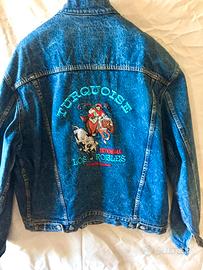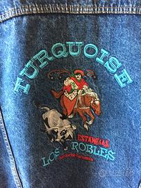 Strepitoso giubbo jeans anni 80 con inserti in pelle e ricami sul retro