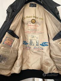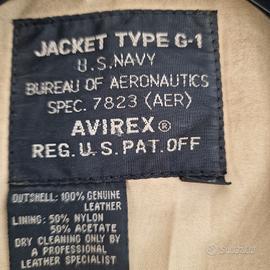 giubbotto in vera pelle vintage anni 80/90 AVIREX jacket type g-1 bureau of aeronautica presenta alcune usure sui polsi la Pelle è in buone condizioni, dettagli interni