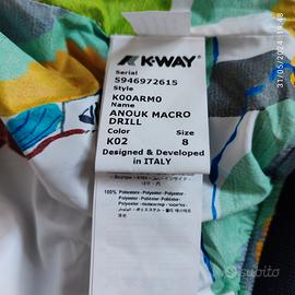 Vendo giubbottino marca K-way, nuovo con cartellino ancora attaccato dove si può vedere il prezzo originale, in tessuto anouk macro drill. Colore nero, con chiusura zip, due tasche esterne con chiusura zip, una dotata di un piccolo moschettone, un taschino interno, polsini, collo e vita in elastico e con una simpatica fodera interna multicolore. Misure in cm: Lunghezza 60, petto 82-86, spalle 38, manica 59, taglia USA 8 (italiana 42) regolare. Su richiesta posso inviare altre foto. Vero affare!!!
