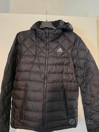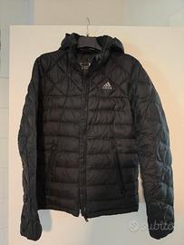 Giubbotto Adidas cin cappuccio. Tessuto trapuntato a rombi. Zip frontale. Tasche laterali con zip Come nuovo.