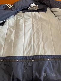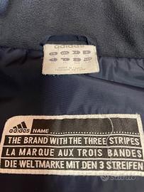 Giubbotto uomo Adidas originale taglia XL blu scuro, tessuto esterno 100% poliammidica, fodera 100% poliestere, con 4 tasche esterne e un taschino interno ottimo stato. Cappuccio a scomparsa nel collo del giubbotto.