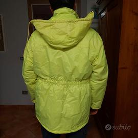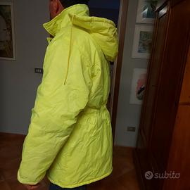 giubbotto impermeabile imbottito giallo alta visibilità con cappuccio. Taglia XL lunghezza cm 78 circonferenza fianchi cm 102 lunghezza maniche cm 62