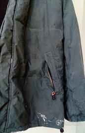 Piumino molto usato con alcune imperfezioni: ci sono delle macchie in varie zone del giubbotto all'esterno, la cerniera è scucita nella parte inferiore e ci sono due piccoli buchini all'interno della fodera (vedere le foto con attenzione), tuttavia la bottoniera, perfettamente funzionante, consente la chiusura ottimale del capo
