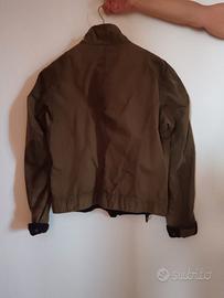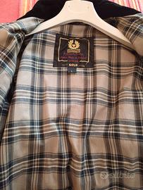 giubbotto Belstaff originale, modello Biker di colore verde con risvolti in velluto nero.