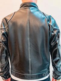 Giubbotto originale Belstaff, linea heritage/moto, in vera pelle nera traforata di altissima qualità.