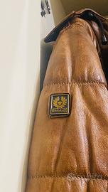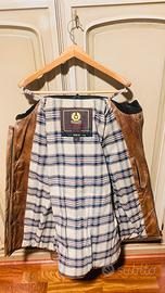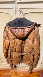 Giubbotto Belstaff in pelle trapuntato con imbottitura, modello raro della Belstaff, con cappuccio staccabile con cerniera. Colore cognac trattamento di invecchiamento come descritto nell’etichetta interna. La taglia è una L ma veste benissimo una M che è la mia taglia, vendo per inutilizzo.