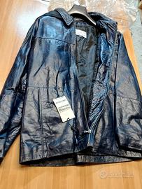 giubbotto giacca artigianale vera pelle con cappuccio nero