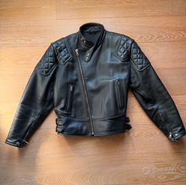 Giubbotto Biker uomo in pelle nera con zip, made in Italy usato pochissimo manifattura artigianale BITLIS