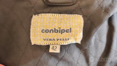 Giubbotto biker in vera pelle firmato Conbipel. Capo nuovo, mai indossato, prezzo originale 99,90 € (come si può vedere dall'etichetta dell'altro annuncio). Disponibile anche identico modello con cartellino (altro annuncio). Realizzato in pelle morbida, con zip frontale, tasche laterali e dettagli metallici. Presenta leggere sfumature rosate in alcune zone, parte del design con effetto vintage/used del modello (visibili in foto). Vestibilità femminile, ideale per look casual o più ricercati.